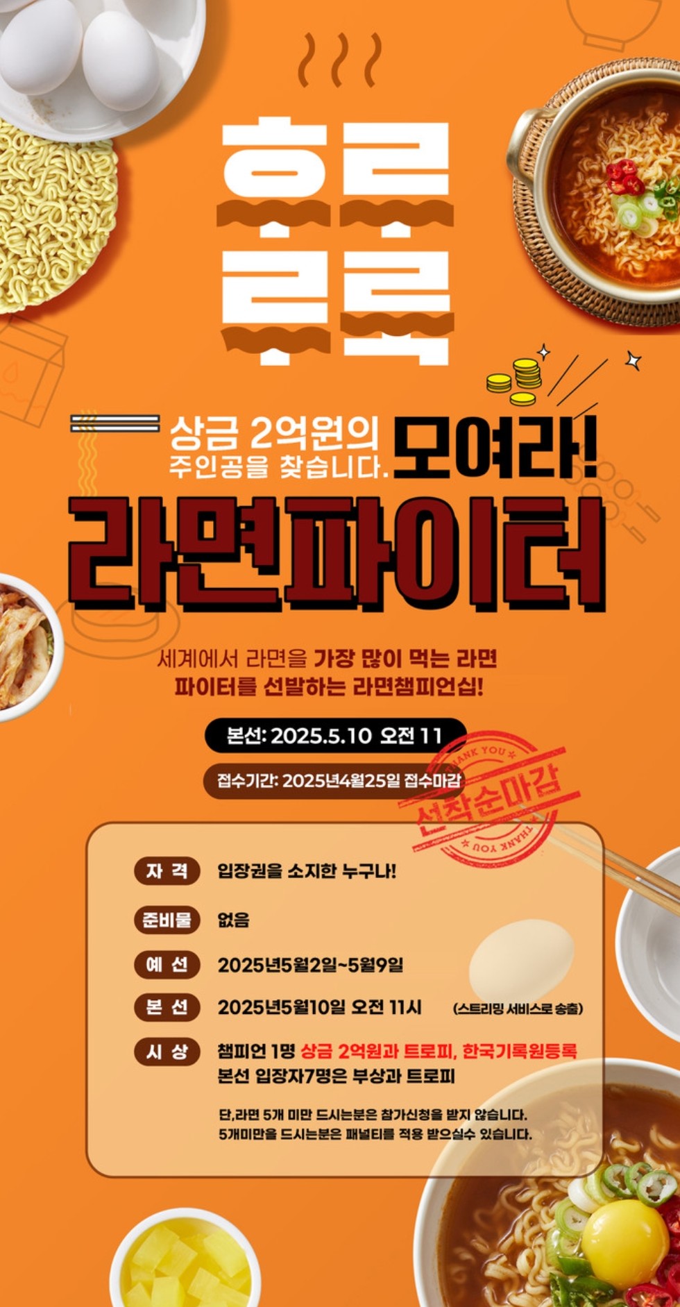 - 라면파이터: 누가 가장 많이 먹나? 총상금 2억 원